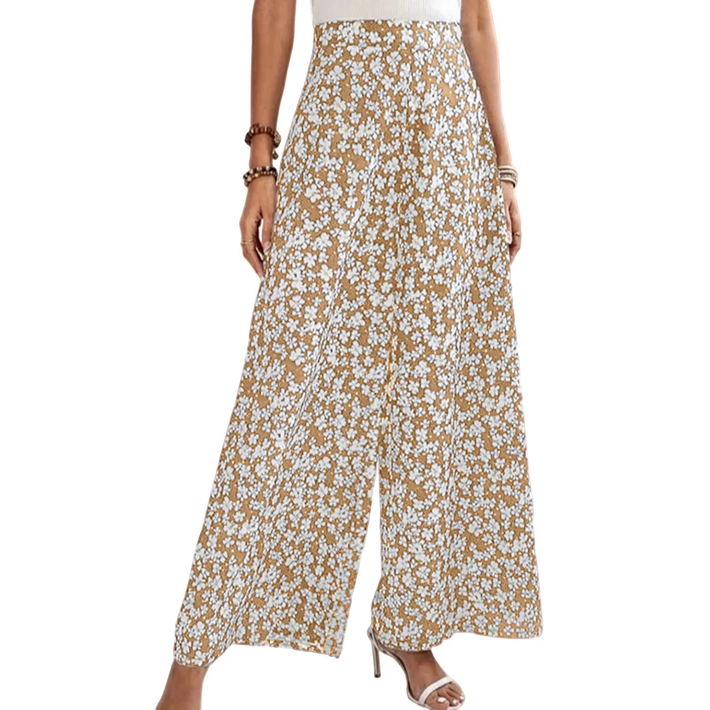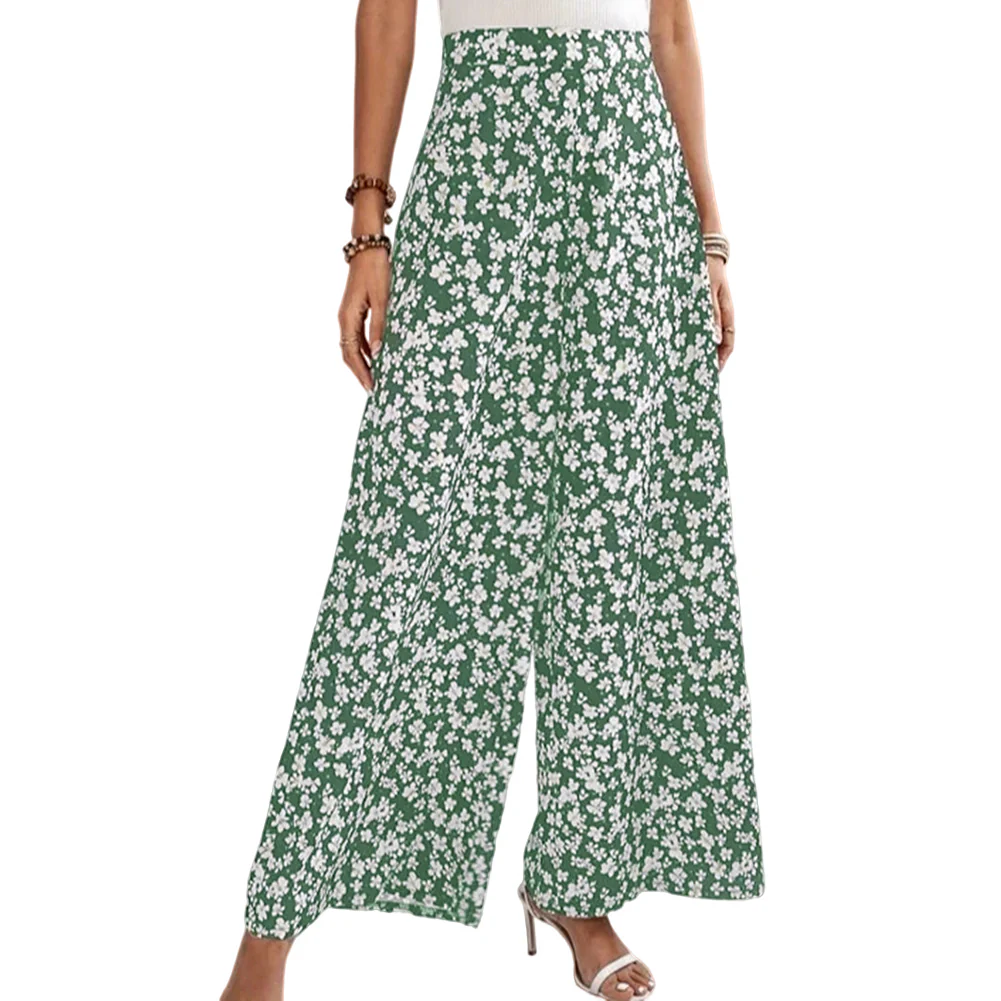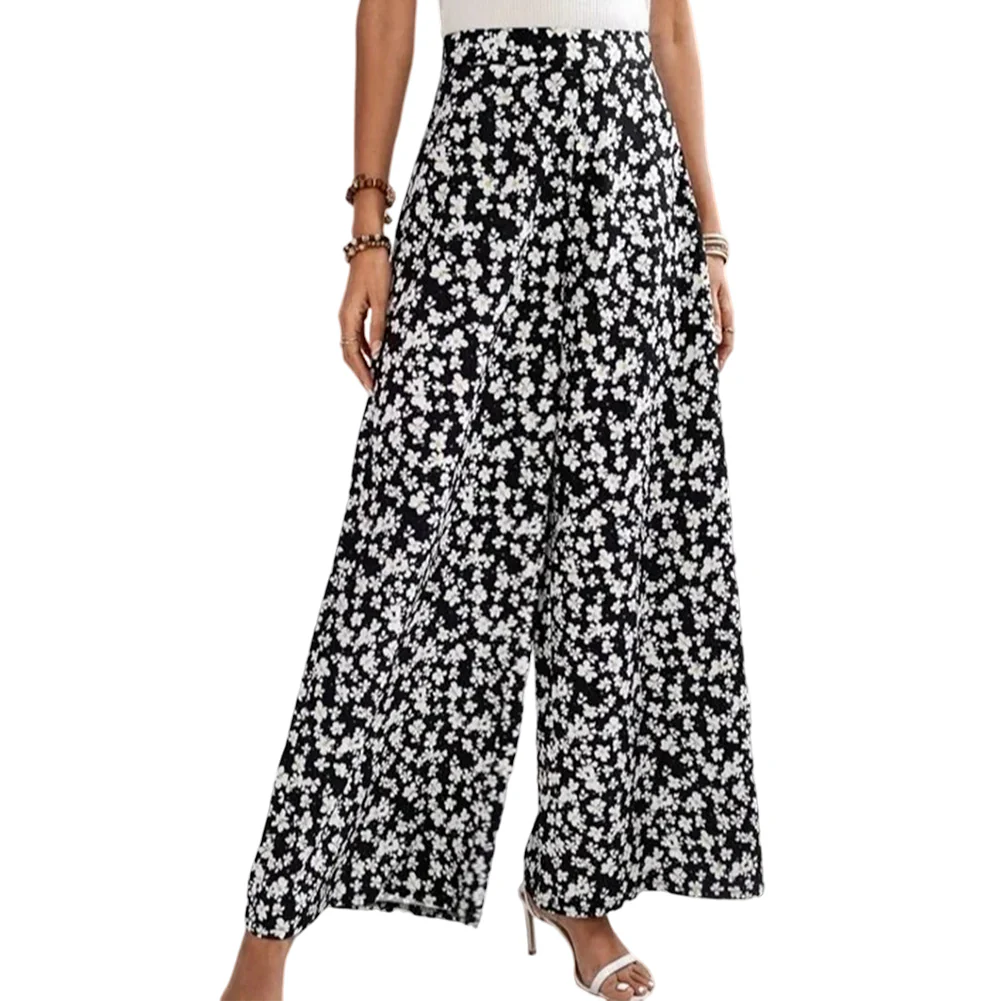 YESFASHION Women Wide Leg Pants Summer Sweet Floral