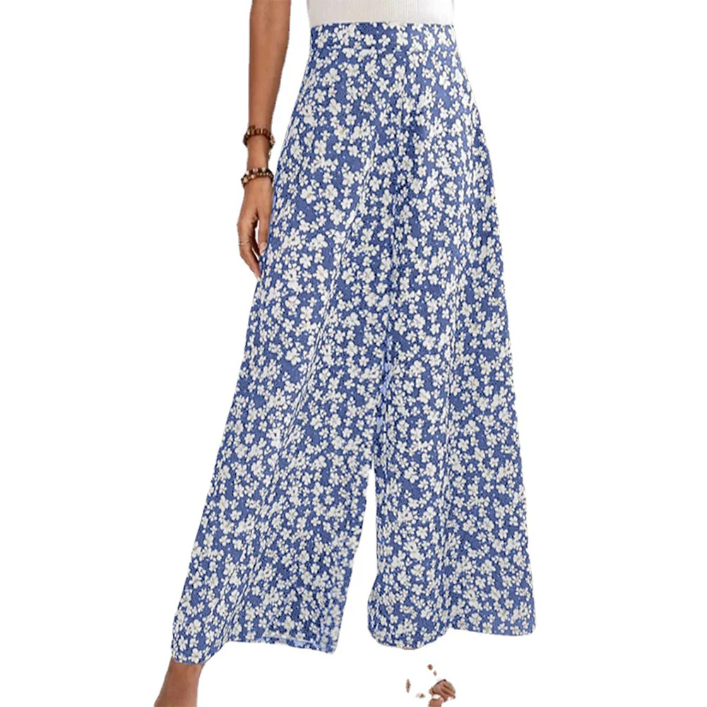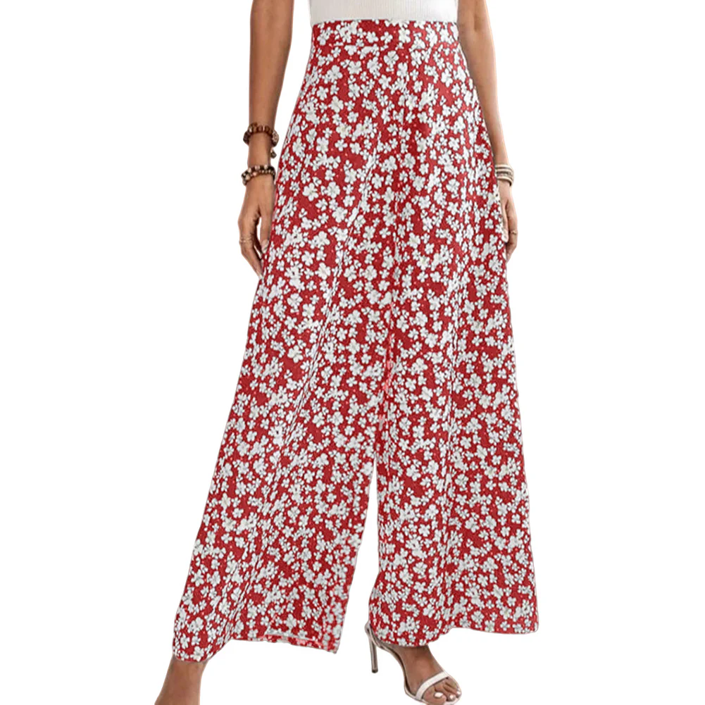 YESFASHION Women Wide Leg Pants Summer Sweet Floral Printing High Waist Trousers Loose Casual Beach Breathable Pants